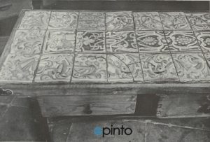 Mención especial merecían las cuatro mesas del refectorio, largas y estrechas, de madera de pino y cubiertas con azulejos de Talavera decorados en azul con los escudos franciscanos. Estaban firmadas por M. Díaz y datadas en 1745.