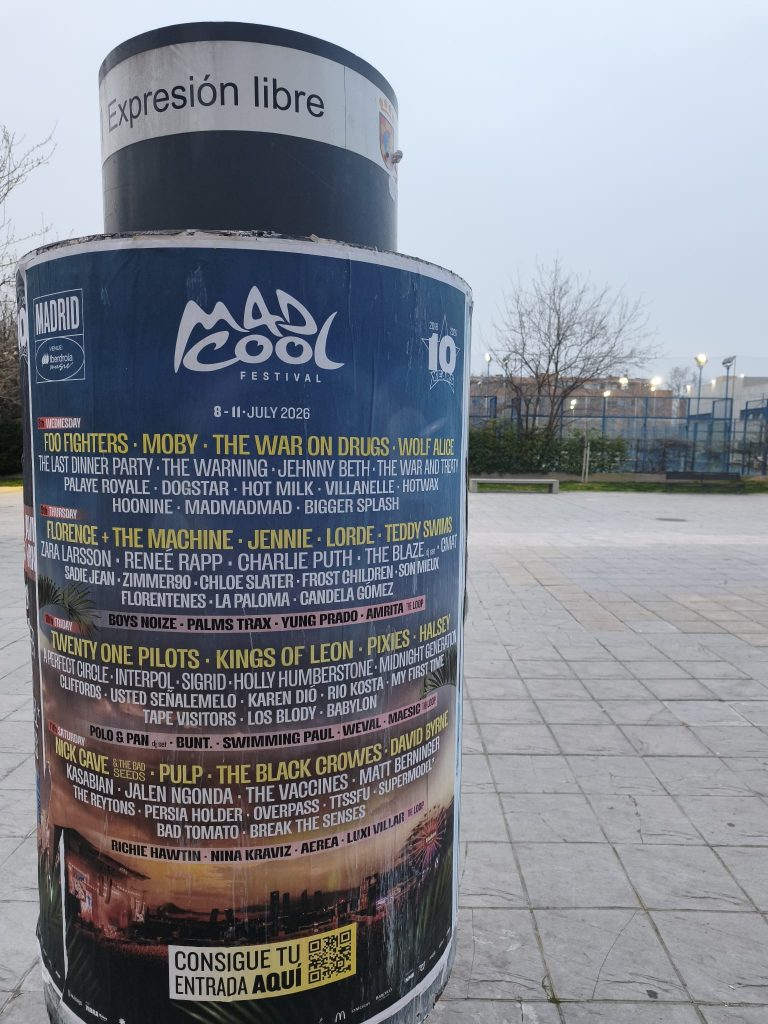 Por ello, el cartel del Mad Cool Festival 2026, que se celebrará entre el 8 y el 11 de julio en el Recinto Iberdrola Music, muy cerquita de nuestro municipio, tendrá un toque pinteño de la mano de Adrián Peña y Los Blody. Un festival, que este año tendrá la actuación de grupos como Foo Fighters, Florence + The Machine, Twenty One Pilots y Nick Cave and the Bad Seeds, además de contar con bandas como Wolf Alice, The Warning, Palaye Royale, A Perfect Circle, Kings of Leon, Pixies o The Black Crowes, entre muchos otros.