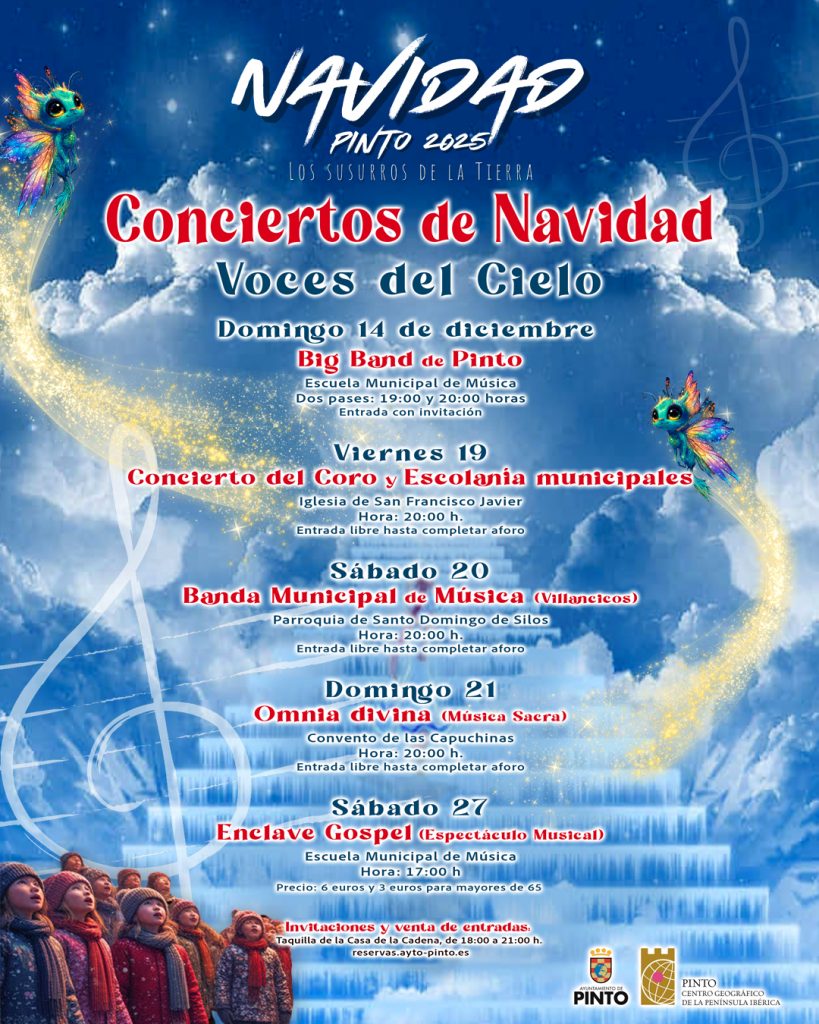 20:00 horas. Concierto de Navidad (Parroquia de Santo Domingo de Silos): A cargo de la Banda Municipal de Música de Pinto. Tradicional concierto con villancicos y melodías propias de estas fechas. Música para todos los públicos.